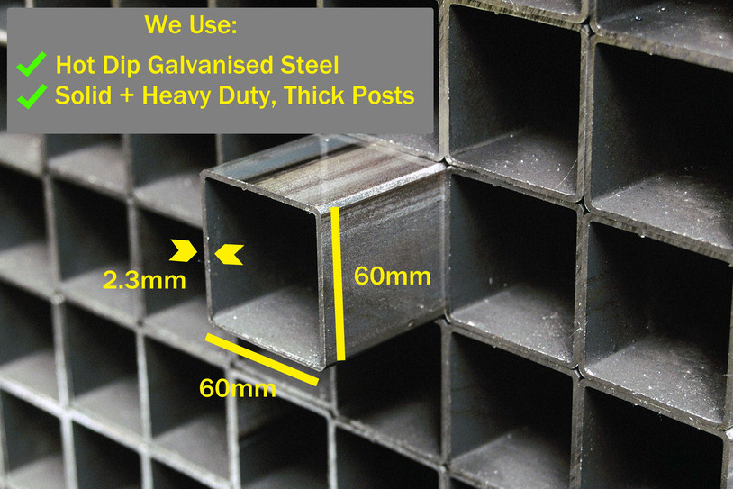 - Solid Steel Posts With Added Steel Uprights, Steel Corner & Steel Apex Bracing.