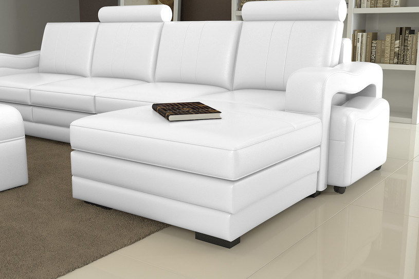 Incredible value for an Italian leather chaise lounge package. The Bella Italian leather corner sofa package also includes the coffee table and 2 x ottomans!