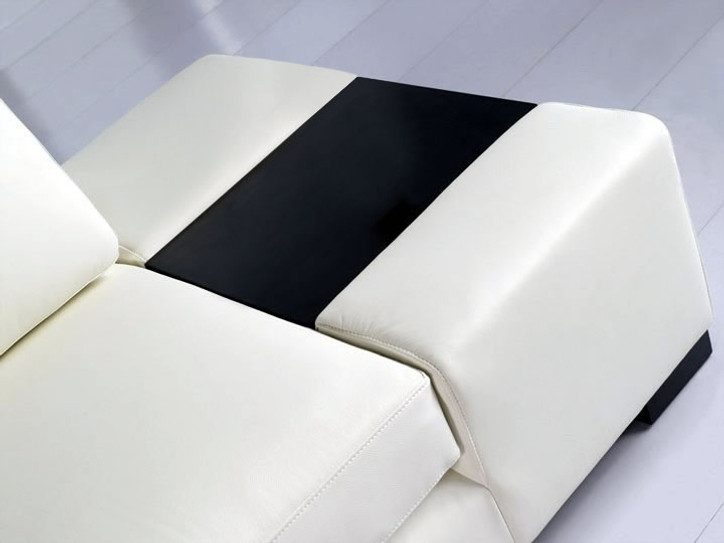 Featuring two supportive headrests, a spacious in-built storage shelf and a clever table on the armrest, the elegant Kendra leather corner couch is perfect for your apartment, house or commercial space.