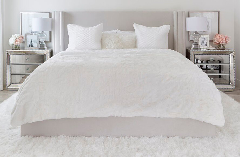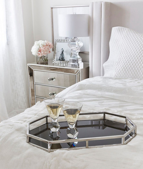 Featuring beautiful, subtle silver beaded trimming and paired with crystal style handles allows for an opulent contrast with the mirrors on the bedside table and dressing table.