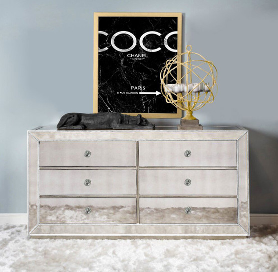 Luxurious and elegant with a touch of glamour, these mirror bedside tables and mirrored dresser is the perfect addition for your bedroom or powder room.
